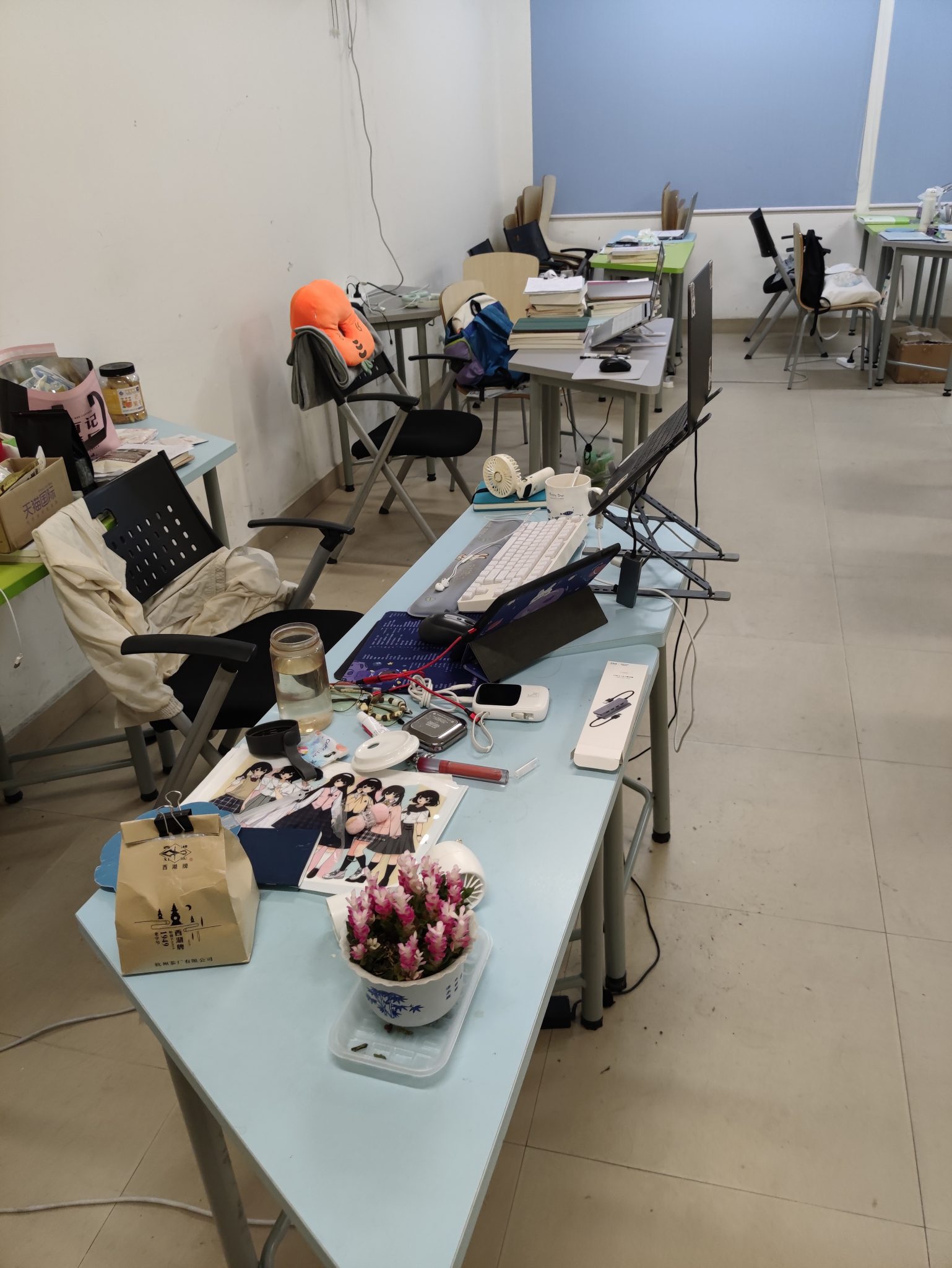 她主动制作话题说:“明天要不要吃疯狂一下?拼一下葡挞?”我第一时间回应她:“要,我要吃葡挞。”DLY没有说话,只是一个劲地摆弄着电脑。她举起手来戳了戳DLY的电脑说:“你呢?”他说:“我不想吃,我想吃中国汉堡。”果然,DLY并不想一起拼单。我也没有说话,她继续坐了一会之后就回到了自己座位上。