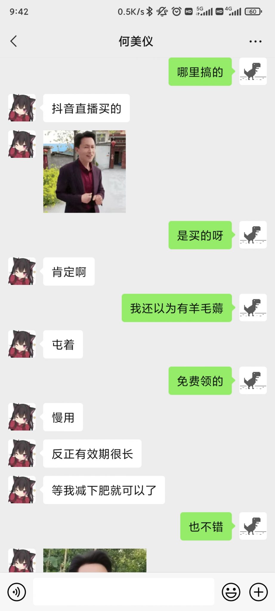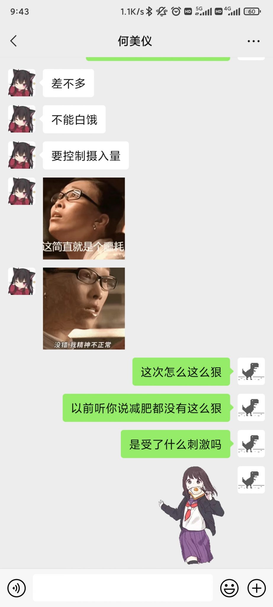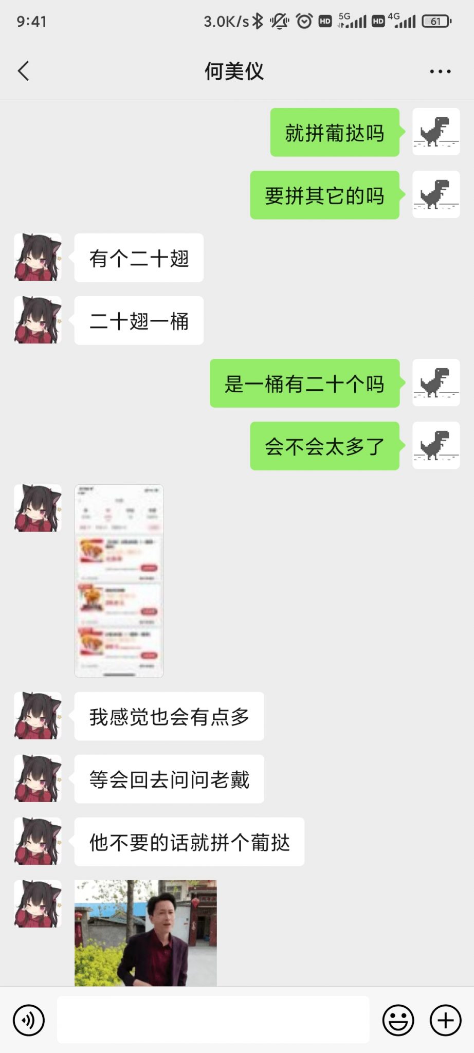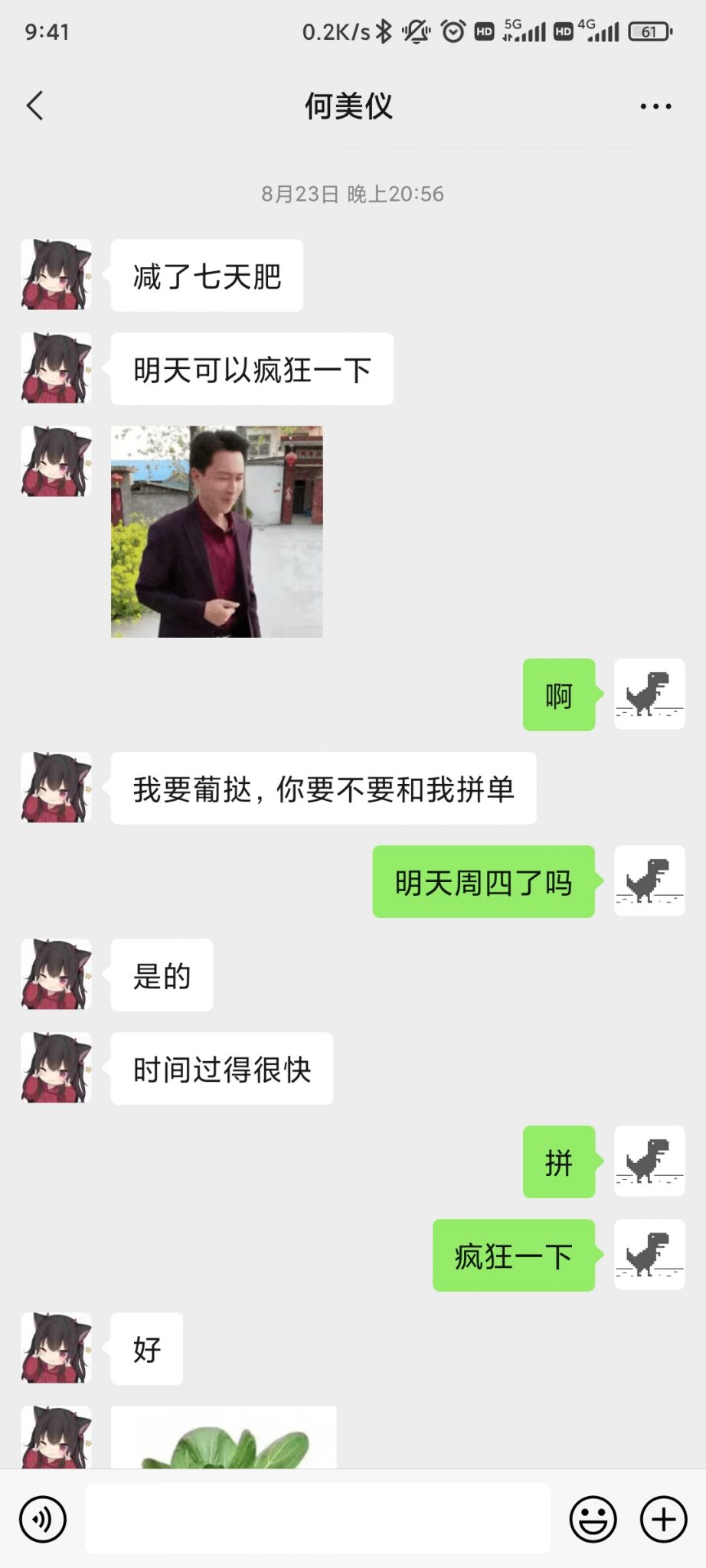 晚上快9点的时候,她突然给我发信息了,距离上一次她给我推荐插件主动给我发信息已经过去两天了。她问我明天要不要拼单KFC的葡挞,我使出浑身解数去回复她,她也回复我很多很多字,我能感受到她的热情!我从未拒绝过她任何事情,肯定也不会拒绝和她拼单。但是她说等会问一下DLY要不要拼单,我顿时不知所措!我绞尽脑汁去找话题和她聊天,一开始她也很热情地回复我,然而她越来越敷衍了,总是隔几分钟才回复我几句。