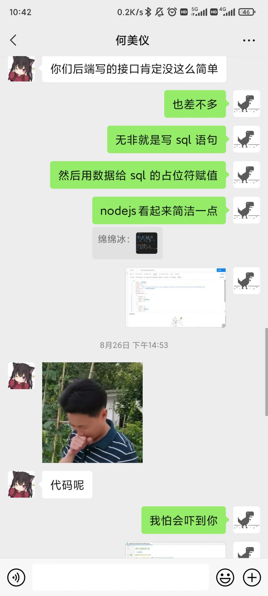 15:06 过去的一个多小时里,她在微信上偶尔找我聊一下,虽然都是关于学习的代码的事情,但是这也可以说明她并没有疏远我,所以我昨天给她送小礼物没有引起她的反感,反而增加了好感度,大概是这样的。